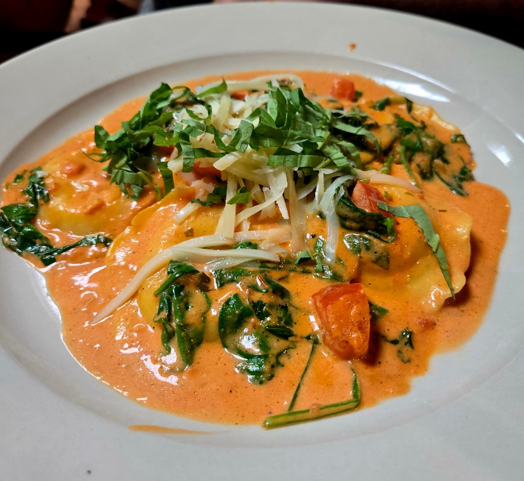 For lunch, I stopped at the charming local restaurant Ship to Shore in Kingston, and it turned out to be an unforgettable culinary highlight of the day. I started with a refreshing blueberry margarita, the perfect balance of sweet and tart, which set the tone for a relaxed, indulgent meal. The Seared Hudson Valley Foie Gras was rich and buttery, served atop a grilled baguette with sun-dried cherries and a bourbon demi-glace that added a deep, smoky sweetness. Next came the Yellowfin Tuna Stack, which was sesame-crusted and perfectly seared in a cast iron pan—layered with creamy avocado, crisp wontons, and finished with a drizzle of sriracha and soy that brought just the right amount of heat. I rounded out the meal with the Burrata Ravioli, delicate pillows of pasta filled with creamy cheese, nestled in a pink tomato cream sauce with sweet peas, baby spinach, fresh basil, and a dusting of romano. Every bite was bursting with flavor and freshness—an elevated but comforting feast that made the afternoon feel like a true celebration.