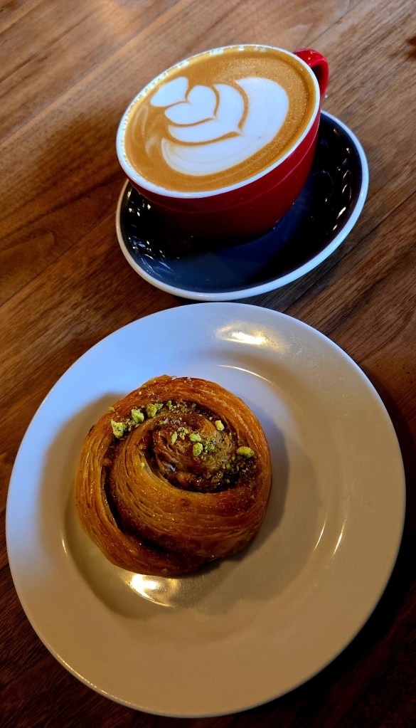 Kingston is rich in colonial charm, being the first capital of New York State, and it still holds onto that historical gravitas in the most endearing ways. I started my visit at Rough Draft Bar & Books,a cozy little coffee shop/bar/bookstore combo—the kind of place where you can sip a pistachio latte while flipping through used copies of poetry and novels by local authors. The shop had beautiful stone walls and hand-written shelf signs, and the smell of espresso mixed with aged paper was just chef’s kiss, as was the baklava roll pastry I could not help but devour. The best part was when I discovered how dog-friendly the town and local businesses are. My exit from the café was delayed due to a giant Newfoundland who decided the best place to cool off and take a nap was on the stone floor right behind my seat at the coffee bar.