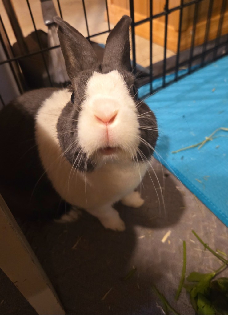 We posted on social media, put up flyers, called local vets, shelters, and pet supply stores. No one reported a missing bunny or claimed him. We took him to the vet and he thankfully had a clean bill of health and confirmed he was about 3 years old. So I did the only thing there was left to do, give him the loving home he deserved.